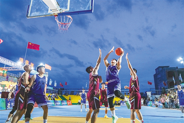 ② 近日,2025年儋州市和美乡村篮球联赛(儋州“村BA”)火热开启。赛事期间,儋州调声、黎苗山歌、竹竿舞表演等特色文化活动也将轮番上演,让观众在感受篮球激情的同时,也能体验地道的儋州风情。海南日报全媒体记者 陈元才 摄