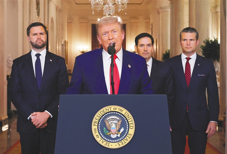 美国总统特朗普21日晚确认,美军空袭伊朗三处核设施。地区问题专家认为,美国动用军事力量在以色列和伊朗冲突中直接“下场”,推升冲突进一步升级并加剧外溢风险,把相关国家和中东地区推向灾难深渊边缘,其连锁反应或将蔓延全球。