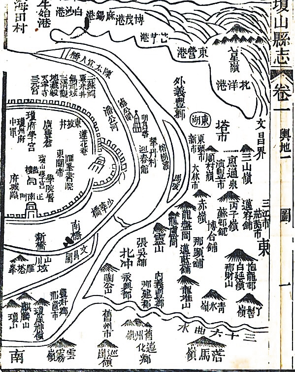明朝初年朝廷设琼州府统辖儋、万、崖三州,下设琼山、澄迈、临高、定安、文昌、昌化、感恩、乐会、会同、陵水十县。这十个县的治所,大部分是临水而设。