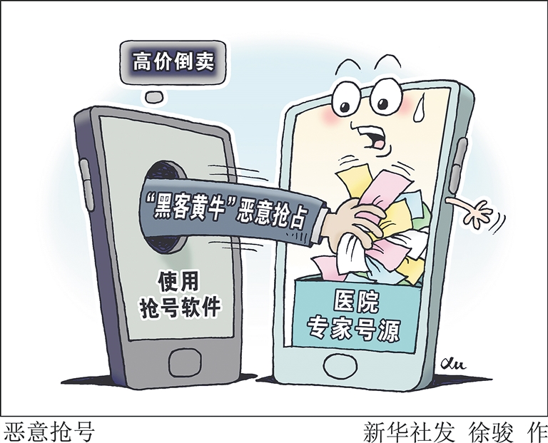 一边是病患一号难求,一边是“黄牛”公然声称代挂专家号。一些地方“黄牛”恶意抢占医院专家号源并高价倒卖的现象,严重扰乱医疗秩序,加剧“挂号难”“看病贵”。