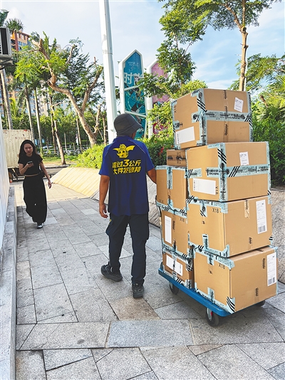 6月24日下午2点,京东物流海口国贸营业部,“6·18”后的繁忙景象仍在继续。上午送了100多件快递的快递小哥张小山,正和同事们热火朝天地卸货、分拣、装车。他们要赶在下午3点出发,将快递一一送达客户。