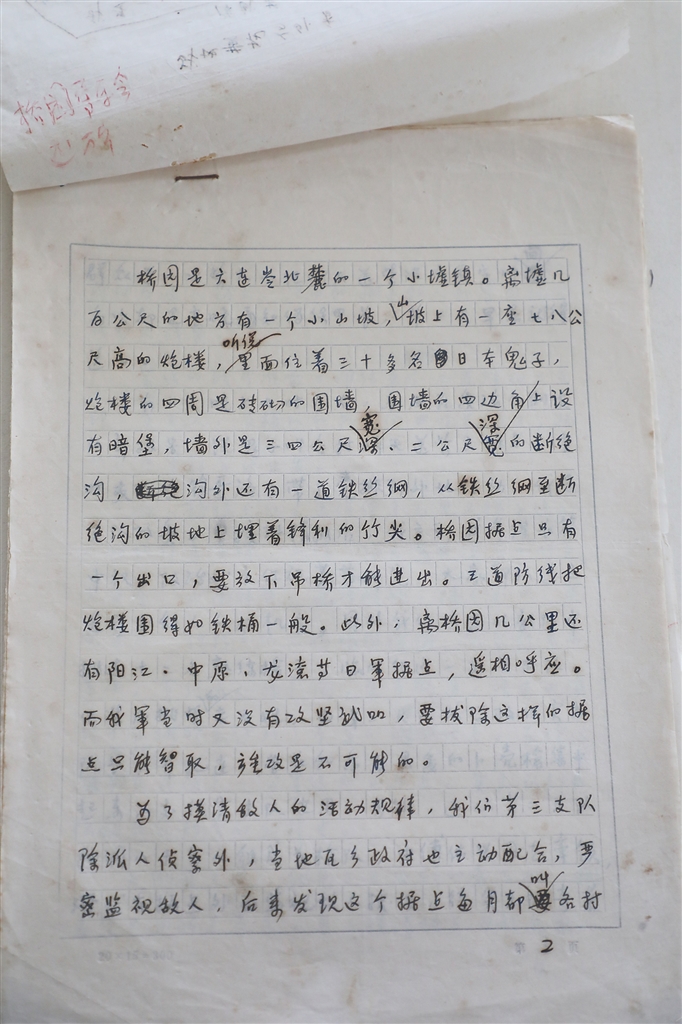 近日,记者在海南省档案局(馆)珍藏的原琼崖纵队第五总队总队长陈武英的档案中,看到了一份陈武英关于琼崖抗战的回忆手稿——《奇袭桥园》: