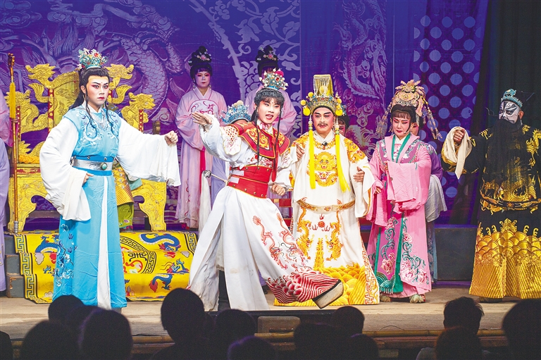 如今,在剧团练功房里,黄元生经常和同事练“打戏”(武打戏)至深夜。他把在大学学的京剧表演程式大胆融入琼剧,加入唱念做打,让戏更精彩。“现在有很多剧团请我去排戏、当编导,台前幕后的工作我都愿意做,我希望积累更多经验,早日实现当主角的愿望。”他自信地说。