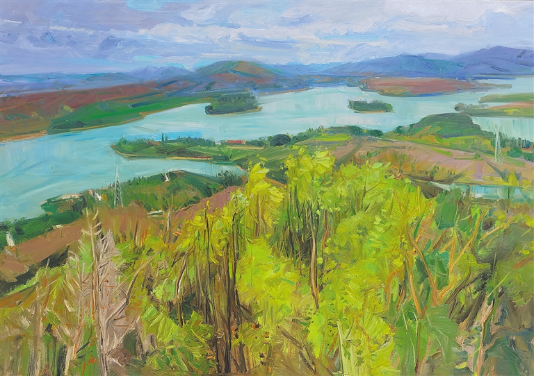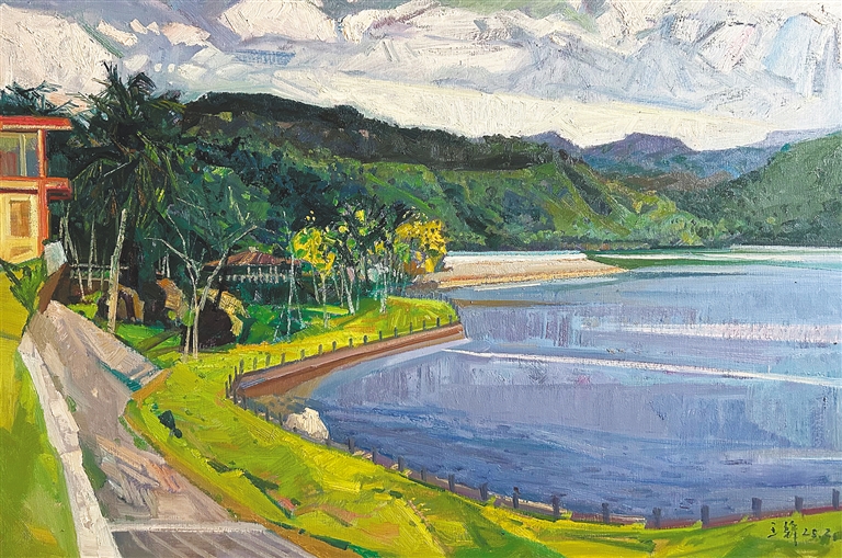 此次展览,主题鲜明、时间跨度大,置身其中,可以明显感觉到斑斓、明艳的色彩扑面而来。碧海晴空的蓝色、湿地红树的绿色、旭日东升的红色……这是海南之缤纷,也是画家们眼中摇曳生姿的海南。