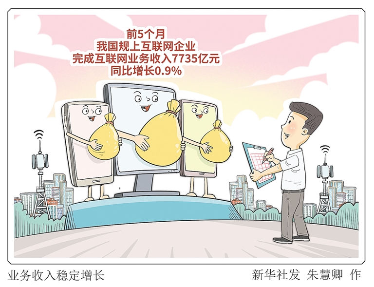 新华社北京7月2日电(周圆 李令仪)记者2日从工业和信息化部获悉,1至5月,我国规模以上互联网和相关服务企业互联网业务收入稳定增长,完成互联网业务收入7735亿元,同比增长0.9%。