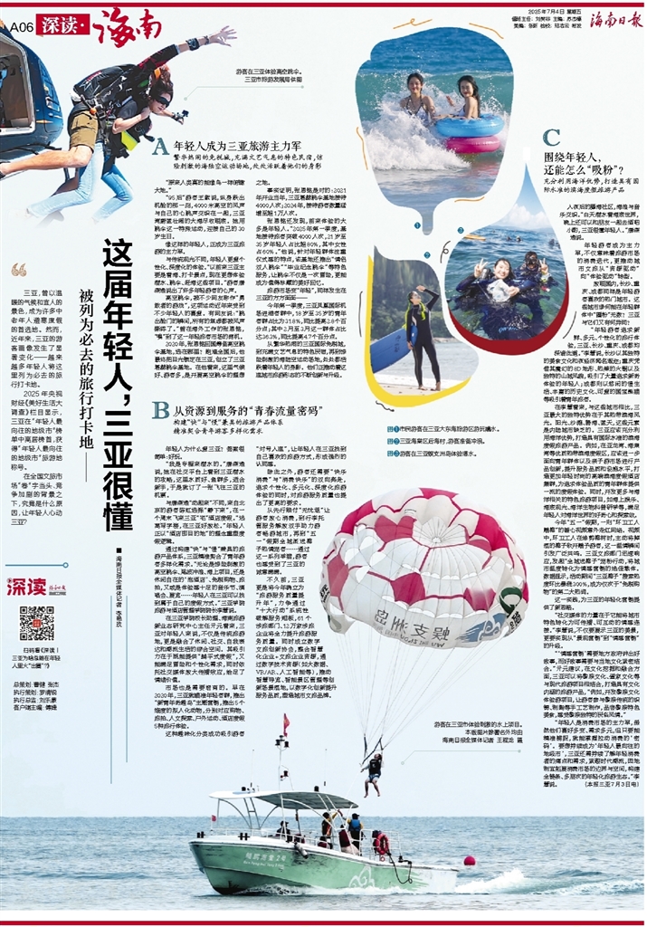从繁华热闹的三亚国际免税城,到充满文艺气息的特色民宿,再到惊险刺激的海陆空运动场地,处处都活跃着年轻人的身影。他们正推动着这座城市旅游形态的不断创新与升级。
