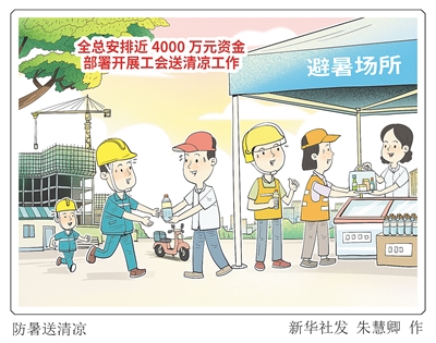 新华社北京7月4日电 (记者樊曦)当前,全国各地已陆续进入高温季节。为切实维护广大职工健康权益,降低高温作业和高温天气作业对劳动者身体健康的影响,全国总工会近日印发通知,部署开展工会送清凉活动。