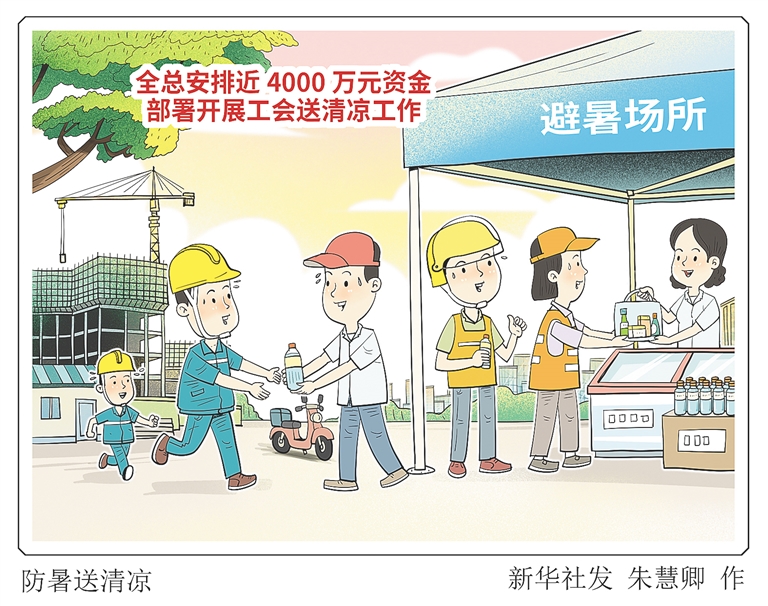 各地工会将通过工会驿站、工会职工服务中心、工人文化宫等工会服务阵地,为一线职工和户外劳动者提供避暑场所、防暑设施,便于职工避暑纳凉;利用“职工之家”App等平台,就近就地、方便灵活地为职工发放防暑降温药品、饮品、清凉包等物资,同时提供全天候的暑期防病知识宣传、防暑知识科普、心理疏导,为高温下劳动者撑起24小时在线的“遮阳伞”。