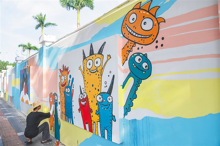 如今,这些漫画墙已成为展示海口城市活力的新窗口。小王会兴奋地邀请亲朋好友来参观:“看,我们的努力让海口的街头也‘潮’起来了!”