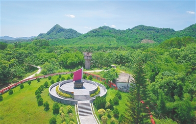 7月10日,在澄迈县昆仑农场西达分场第13队,美合革命根据地纪念碑高高耸立。晴空烈日下,环绕纪念碑的树林哗哗作响,仿佛从遥远时空传来的抗日呐喊声……1940年,为抵抗日军和国民党顽固派的进攻,中共琼崖特委决定在澄迈美合地区建立抗日根据地,为将来向五指山区发展做好准备。