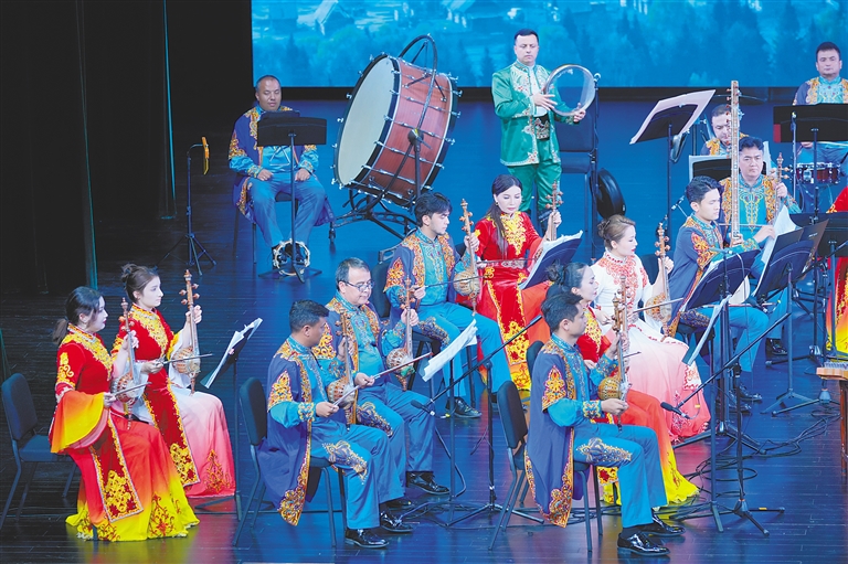 当晚,音乐会以《丝路馨声》拉开帷幕,热瓦普、手鼓、马头琴等新疆特色民族乐器奏响千年丝路的历史回响。随后,《博尔塔拉风光》《紫罗兰的天空》《帕米尔姑娘》等曲目,将观众的思绪牵引至天山南北的广袤天地。整场演出的曲目编排如同一部流动的新疆百科全书,描摹了新疆不同地域的独特风情。