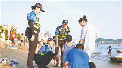 警与景相融,在海南各大景区,游客们都能看到身着“旅游警察”字样制服的民警在巡逻,他们用热心的服务和专业的素养,让游客“放心游”。