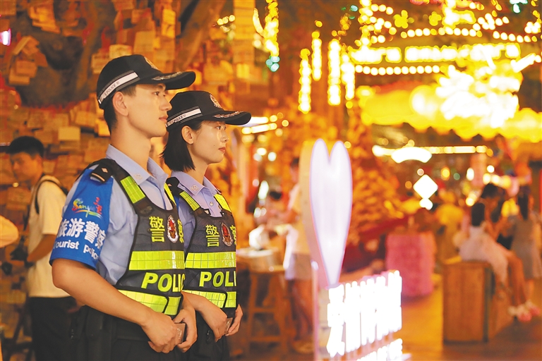“海南各级公安机关持续重拳整治、净化市场秩序,全面部署开展旅游警察巡逻防控工作,严厉打击涉旅领域突出违法犯罪,延伸旅游警察护航服务触角,防范化解涉旅领域治安风险隐患。”海南省公安厅治安总队主要负责人介绍,海南先后出台《海南省公安机关旅游警察执法指南(试行)》《海南省旅游行政执法与刑事司法衔接工作办法(试行)》等系列制度,以打开路、打防并举、综合治理,努力营造安全舒适的旅游环境,树立规范诚信的旅游形象,提供优质便利的旅游服务,着力打造旅游警务“金名片”。