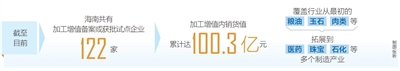 本报海口7月12日讯(海南日报全媒体记者曹马志 通讯员艾韬)海南自贸港加工增值30%货物内销免关税政策(以下简称加工增值免关税政策)享惠货值首次跨越百亿元大关。海口海关近日公布数据显示,截至目前,海南共有加工增值备案或获批试点企业122家,加工增值内销货值累计达100.3亿元。