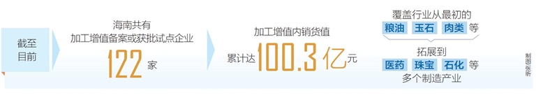 加工增值免关税政策作为海南自贸港“一线放开、二线管住”核心的税收政策之一,正不断推动着产业扩大、结构优化和就业增长,成为海南自贸港经济高质量发展的重要引擎。该政策率先在洋浦保税港区落地,随后适用范围不断扩大。2022年9月,扩区到海关监管特殊区域外的重点园区,2024年9月按“三不限”原则进行压力测试后,相关试点企业不再限定为海南自由贸易港重点园区内的海关高级认证企业,海南自由贸易港内符合试点条件的企业均可开展。加工增值免关税政策实施4年来,覆盖行业从最初的粮油、玉石、肉类等领域,拓展到医药、珠宝、石化等多个制造产业,共免税约8.4亿元,呈现“多点开花”景象。