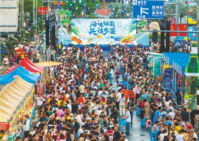 本报文城7月12日电(海南日报全媒体记者刘冀冀 实习生杨梦娜)7月12日,2025年“九九杯”海南(文昌)乡镇排球联赛(以下简称“村VA”)铺前千人村宴在铺前镇热闹开席。海鲜荟萃、醋味飘香,以“海味铺前 共话乡宴”为主题的铺前村宴让镇上的新兴街人声鼎沸,热闹非凡。