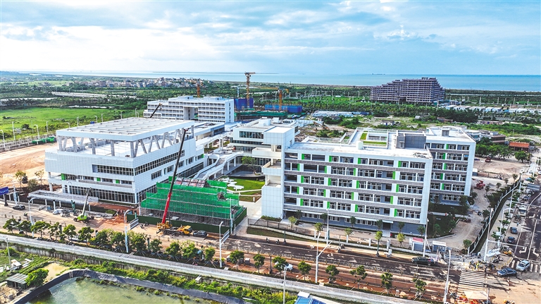 近日,位于海口市江东新区的海南中学江东校区项目,综合楼、初中部教学楼等楼体施工、室内教学设备安装已完成,目前正进行操场和校门的施工,同时启动验收工作。