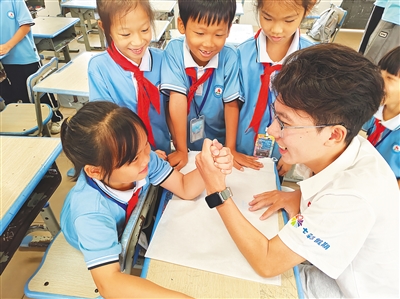 “我还给孩子们讲科学家屠呦呦的故事,引导他们学习她永不言弃的精神。”王诗涵说,由于二三年级学生年龄较小,更活泼好动一些,他们便将游戏与课程内容相结合,鼓励孩子们走上讲台,提升他们的自信心与表达能力。
