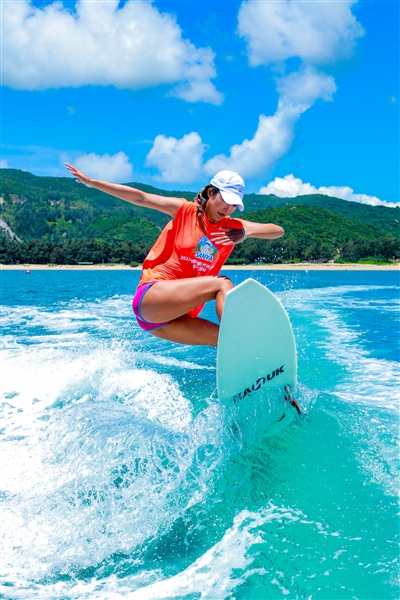 冲浪是勇敢者的游戏。三亚后海皇后湾,一处被陆地三面环抱的小海湾,这里海水清澈、沙滩白净,拥有全年不断的海浪,一群冲浪爱好者在这里与浪共舞。
