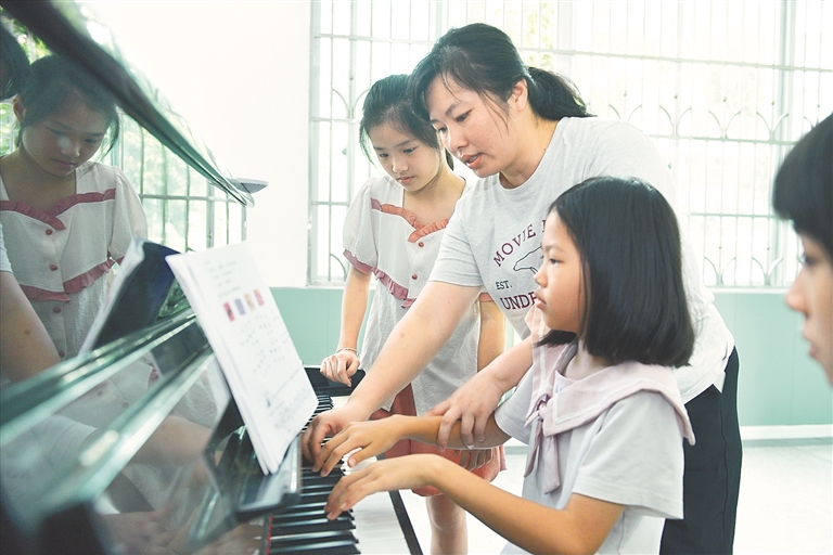 近日,屯昌县青少年活动中心里传出一段略显生涩的钢琴声,8岁女孩张欣妍端坐在琴凳上,跟随音乐的节拍,两手指尖在琴键上跳跃,“80后”钢琴教师周巧英看在眼里,满心欢喜。