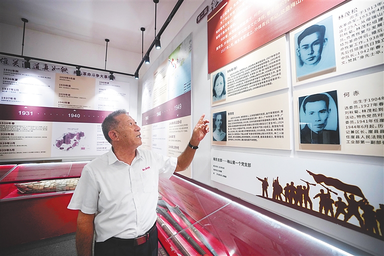 “在这片浸透鲜血的热土上,梅山儿女用赤诚与无畏谱写了一曲曲气壮山河的英雄赞歌。”在梅山革命史馆负责人孙世庆深情讲述中,参观者仿佛看到梅山儿女挥舞大刀、端起钢枪,与敌人展开殊死搏斗的壮烈场景。