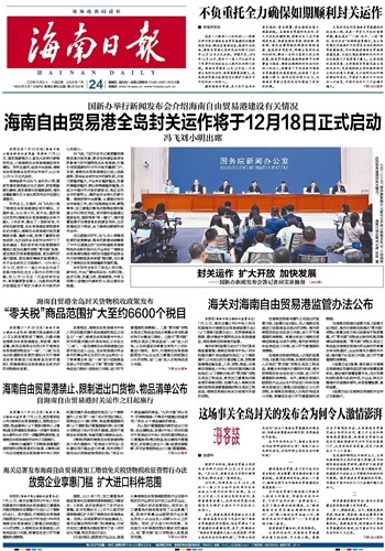 海南自由贸易港全岛封关运作将于12月18日正式启动