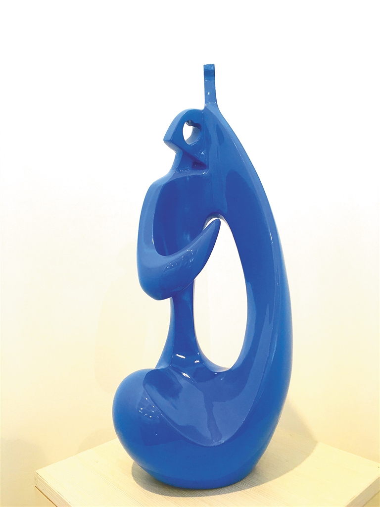 特邀艺术家陈学博的《月光曲》以抽象语言捕捉光影诗意,蓝色釉面随光线角度变幻出深海般的幽邃,镂空的曲线似月光在海面的倒影,又像音符在空气中流动。张风的《城市里的打工妹》以写实手法聚焦当代年轻群体,这件作品跳出地域题材的局限,在个体叙事中折射出时代变迁中的奋斗群像。