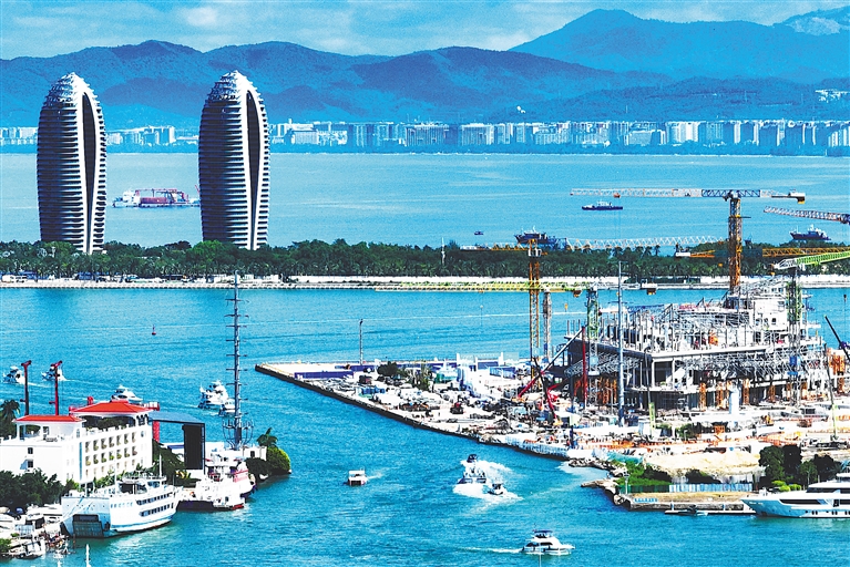 7月27日,位于三亚的中国海南国际文物艺术品交易中心和海南国际文化交流中心项目(以下简称“双中心”项目)建设现场,900余名建设者奋战在施工现场,加快推进施工进度。