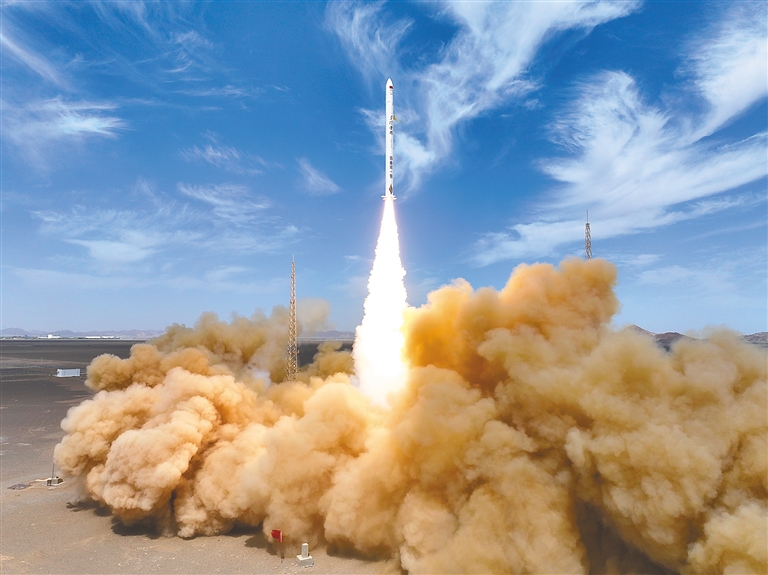 7月29日12时11分,双曲线一号遥十运载火箭在我国酒泉卫星发射中心发射升空,将搭载的恩施硒都山泉号卫星顺利送入预定轨道,飞行试验任务获得圆满成功。新华社发