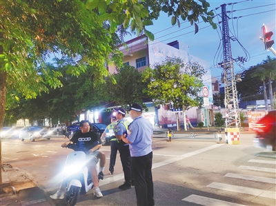 在规范交通秩序方面,屯昌对轻微违法行为以教育为主,设立头盔宣传劝导站,对不戴头盔等行为予以路口志愿劝导、罚款等处理。同时,联动家校宣传交通安全教育知识,严查违停、超速等,筑牢交通安全防线。