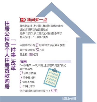 海南推出“一张表单、一次申请、全流程不见面”的住房公积金个人住房贷款购房创新服务模式,累计共减免97项填报内容、13项申报材料、7次跑动办事和5个审批环节,将办理时效较原流程提升了80%。