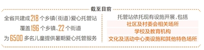 今年,海南将“乡镇(街道)‘爱心托管站’”列入省级民生实事项目,明确要求在全省196个乡镇、22个街道实现托管站全覆盖。像陈瑜这样接受暑期爱心托管的儿童,在全省还有6500多人;像遵谭镇文化站这样的托管站,在全省共有218个。