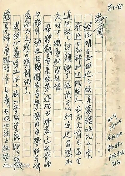 1942年5月,日寇对山西辽县麻田(今属山西省左权县)“铁壁合围”,进行疯狂“扫荡”。5月22日晚,左权在油灯下给妻女写下最后一封信。“别时容易见时难,分离二十一个月了,何日相聚,念,念,念,念!我担心着你及北北,我在前线,我不愿挂念你,但为了儿女情长,影响我的职责,就是最大的罪恶。”仅3天后,左权在指挥部队掩护中共中央北方局和八路军总部等机关突围转移时不幸牺牲,年仅37岁。