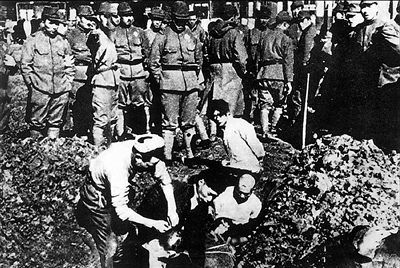 为掩盖罪行,日军建立了严密的审查制度。电影中频繁出现的“不许可”印章,也是历史的真实写照——凡涉及屠杀、强奸、劫掠等影响日本国际形象的影像,均被强制销毁或封存。这种系统性掩盖罪行的行为,暴露了侵略者明知所行之恶依然肆意横行的暴虐残忍。然而,正是那些被日军欺辱的人们,用勇气和智慧,将证据悄悄留存。张纯如所著《南京大屠杀》,展示了两张W·A·法默送给《展望》杂志的照片。其一为南京沦陷后日本兵以中国俘虏为活靶进行刺刀训练,其二为5名中国俘虏被日军活埋。照片来源为:日本兵拍摄后送到上海冲洗,日本独资店的中国雇员违反命令多洗了一份,并将之偷传出来。