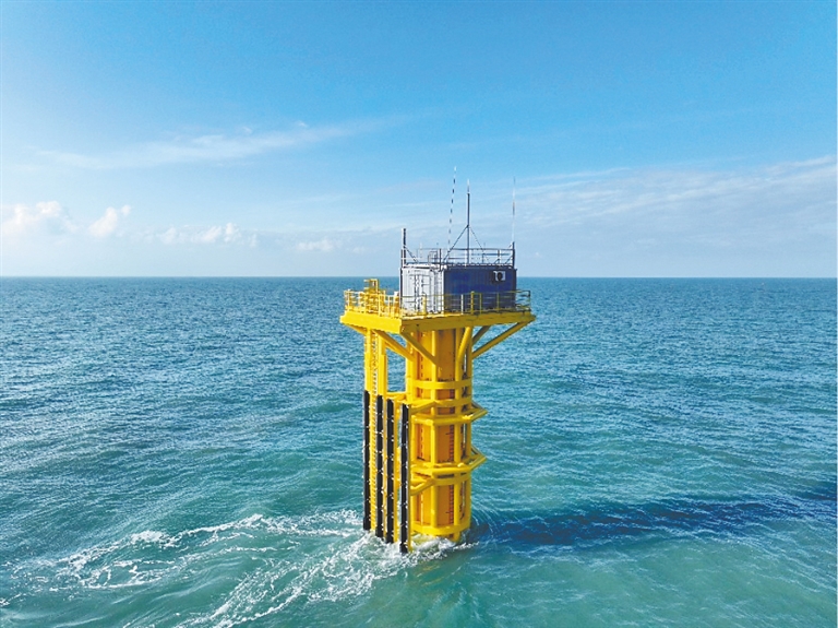 试验场建设了一座总桩长97米的海上测试平台,按照50年一遇的极端海况进行设计。作为固定在海面的观测平台,它搭载的风、浪、流、温度、潮位等监测设备,可持续、精确、多层次地开展海洋信息的实时监测,为现代台风预报的准确性奠定基础。