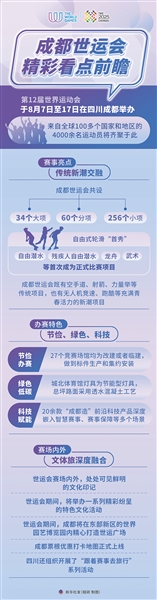据介绍,成都世运会共设34个大项、60个分项、256个小项,以非奥运会项目为主。“今年的赛事项目呈现新老交融等特点,观众将直观感受体育文化的传承与演进。”成都世运会执委会相关负责人说。