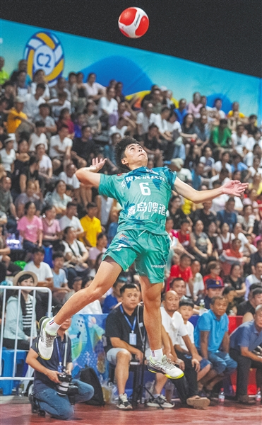 15岁的“小盖哥”符树盖,是紫贝文城战队最年轻的球员。今年秋天,他将走进清华附中文昌中学,成为一名高一新生。别看他年纪小,在赛场上展现出了极高的专业性。作为后排队员,他凭借出色的发球和防守技术,多次化解对手进攻,赢得阵阵喝彩。解说员更是点赞他“有潜力、有前途”,是文昌排球未来的希望之星。