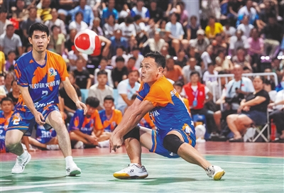 提起明星球员符向明,文昌排球界几乎无人不知,“老赛”的名头响当当。1米62的身高,并未限制他的排球之路,凭借快速灵活的移动、扎实的后排技术和跳飘球,他常常在球场上演“极限救球”,人送外号“文昌铁三波”。