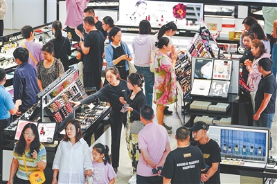 第一次来三亚的“新朋友”上海游客黄悦沉浸在三亚琳琅多样的免税购物场景里,从国际大牌到特色好物,品类丰富,价格优惠。