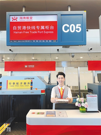 眼下正值暑运旺季,海口美兰国际机场一片繁忙。为确保旅客享受到更加便捷、优质的出行服务,海南航空在海口—北京往返的自贸港快线航班精心打造了专属值机柜台、“自贸小飞侠”快速指引、绿色快速安检、无忧速运行李等服务模式。