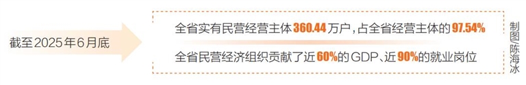 据介绍,在加快建设海南自贸港的进程中,民营经济是不可或缺的重要力量。近年来,海南出台系列文件促进民营经济发展,截至今年6月底,全省实有民营经营主体360.44万户,占全省经营主体的97.54%;全省民营经济组织贡献了近60%的GDP、近90%的就业岗位。