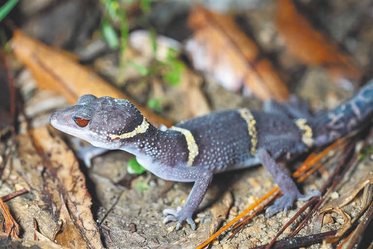 琼中黎母山热带雨林,国家二级重点保护野生动物海南睑虎出来觅食。本组图片均由海南日报全媒体记者 李天平 摄