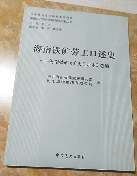 在海南,有一批珍贵的历史资料——1963年组织的石碌铁矿职工口述矿史的回忆录,其中有156名抗战时期幸存劳工的回忆,详细地记录了这些矿工在抗战时期被日军强征、骗招到海南石碌铁矿的悲惨经历。这些矿工的回忆资料,后被收入《海南铁矿劳工口述史》(中共海南省委党史研究室、海南海钢集团有限公司编,中共党史出版社出版)一书,以此揭开日本在海南进行经济掠夺的冰山一角。