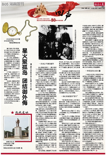 正是在各族群众的大力支援下,中共领导的琼崖抗日武装一次次地粉碎了日寇对抗日根据地的疯狂“扫荡”和“蚕食”,使侵琼日军陷入人民战争的汪洋大海之中。