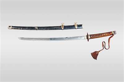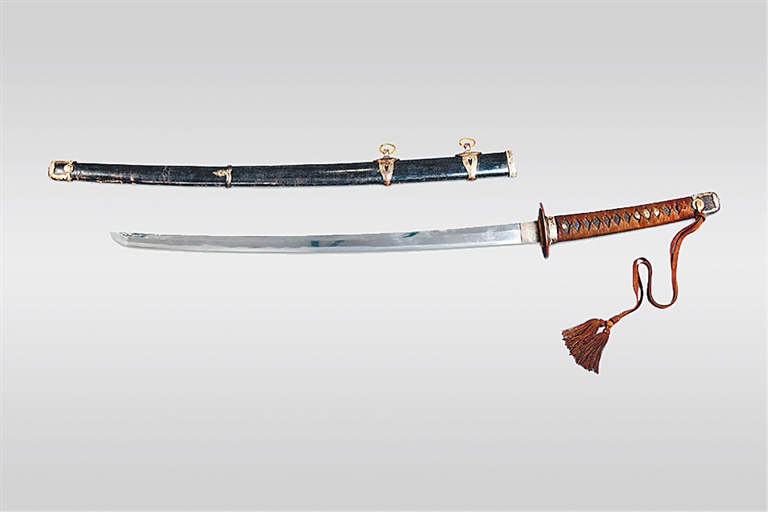 一把军刀,见证了侵琼日军投降的历史。中国人民革命军事博物馆的展厅里,陈列着一把日本军刀,标牌上写着:“1945年侵华日军海南警备府司令、海军中将伍贺启次郎投降时呈交的海军军刀。”捐赠者是曾任国民党第46军军长的韩练成(抗战期间与周恩来保持密切的单线联系,暗中保护琼崖党组织,1950年加入共产党)。据韩练成之子韩兢回忆,这把军刀是抗战胜利后伍贺启次郎交给韩练成的。1959年,韩练成将刀捐给了正在征集文物的军事博物馆。