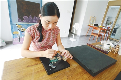 作为儋州市八一中学的美术老师,王小荣还将漆画带入到课堂当中,希望更多孩子在作品赏析中了解并喜欢上漆画创作。