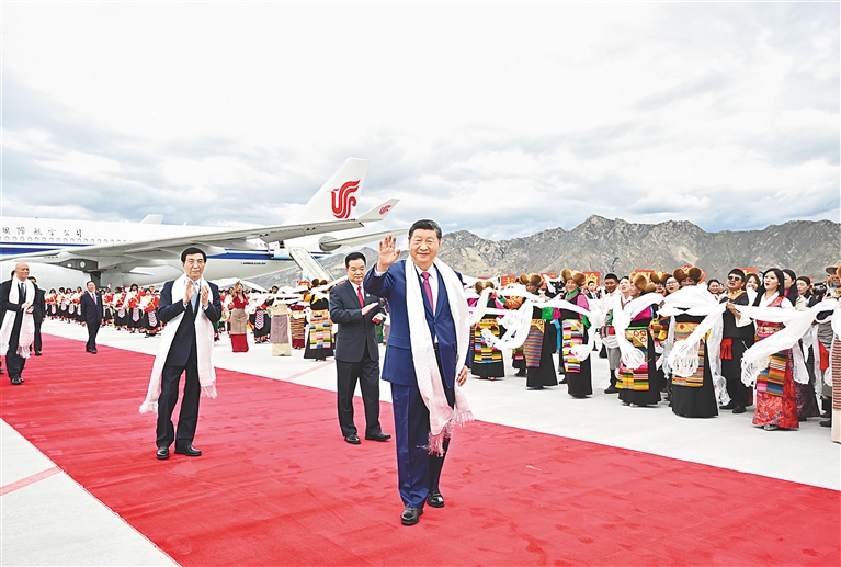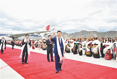 习近平率中央代表团抵达拉萨 出席西藏自治区成立60周年庆祝活动