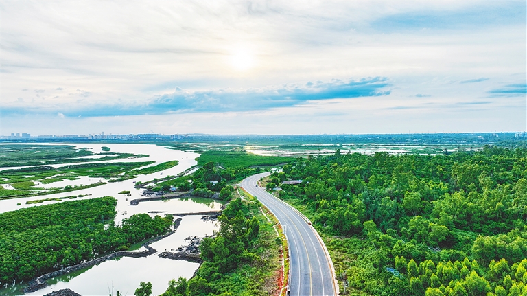 这条路,串联滨海滨河特色旅游休闲环。记者沿路实地探访发现,这条旅游公路沿线自然旅游资源丰富,毗邻面积达数万亩的新英湾红树林湿地保护区,大片的红树林长势茂盛,滩涂湿地星罗棋布,不时可以看到或栖息或翱翔的水鸟。同时,还能看到洋浦千年古盐田、古村古街古庙等极富地域特色的人文景观。