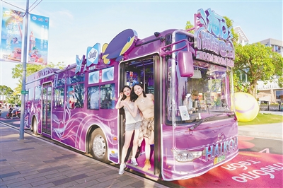 8月9日晚,海口蹦蹦巴士停在自在湾街区。车厢里,打碟声混着合唱,24岁的游客周舟举着手机录像,镜头里朋友正在欢乐蹦迪。“周末就要好好释放情绪、接收欢乐!”