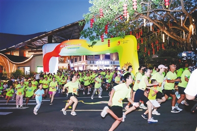 “和上百人一起从山脚跑到山顶,既酷炫又解压。”近日,三亚市民陈光参加三亚鹿回头风景区组织的荧光夜跑活动,表示“体验超乎预期”。放眼望去,参与者沿着依山而建的步道向上奔跑,身上的荧光装备与三亚的城市灯火交相辉映。